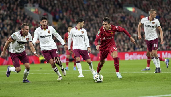 "Redsi" su na "Enfildu" ubedljivo savladali Vest Hem rezultatom 5:1, a dvostruki strelci bili su Diogo Žota i Kodi Gakpo.
