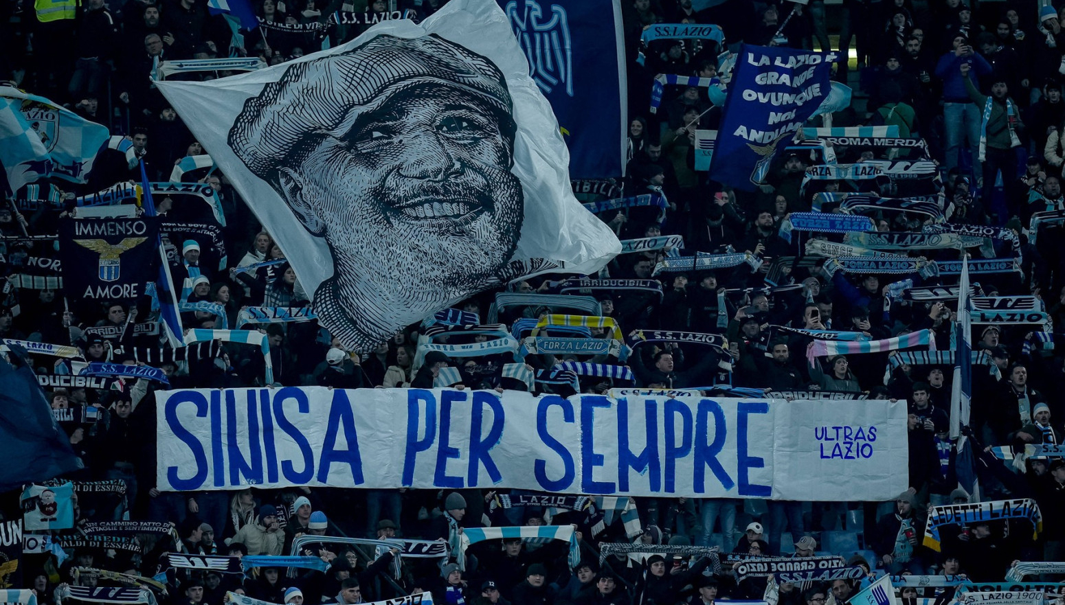 Olimpiko, navijači Lacija su istakli transparente sa dirljivim porukama, dok je na video bimu prikazana Mihajlovićeva fotografija u dresu rimskog kluba uz reči zahvalnosti za sve što je uradio za fudbal.