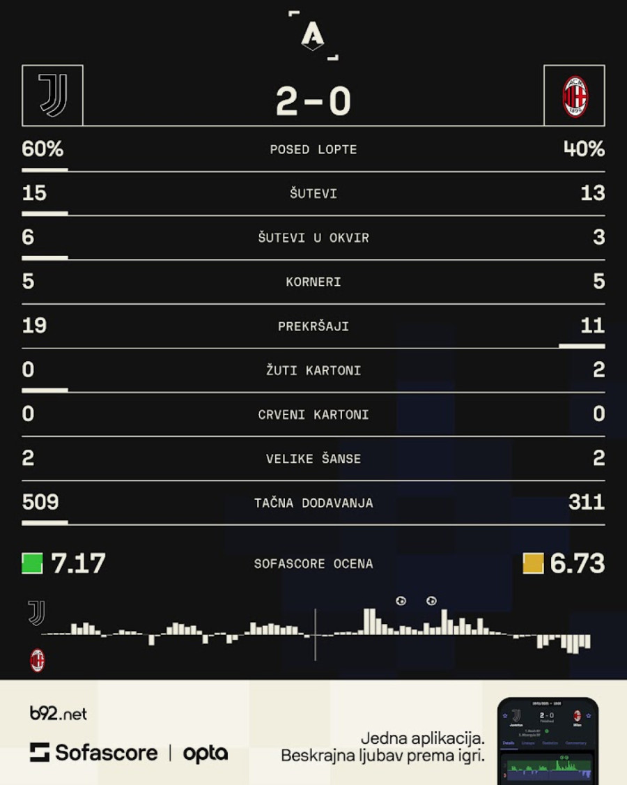 Posle ove pobede Juventus je preskočio Lacio pa je sada na četvrtom mestu tabele sa 37 bodova, a Milan je uprkos porazu ostao na osmom mestu sa 31. bodom.
