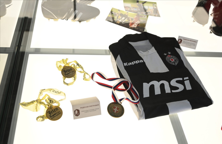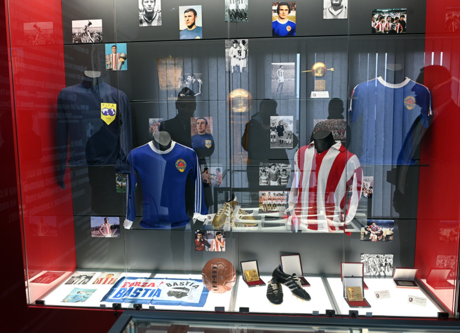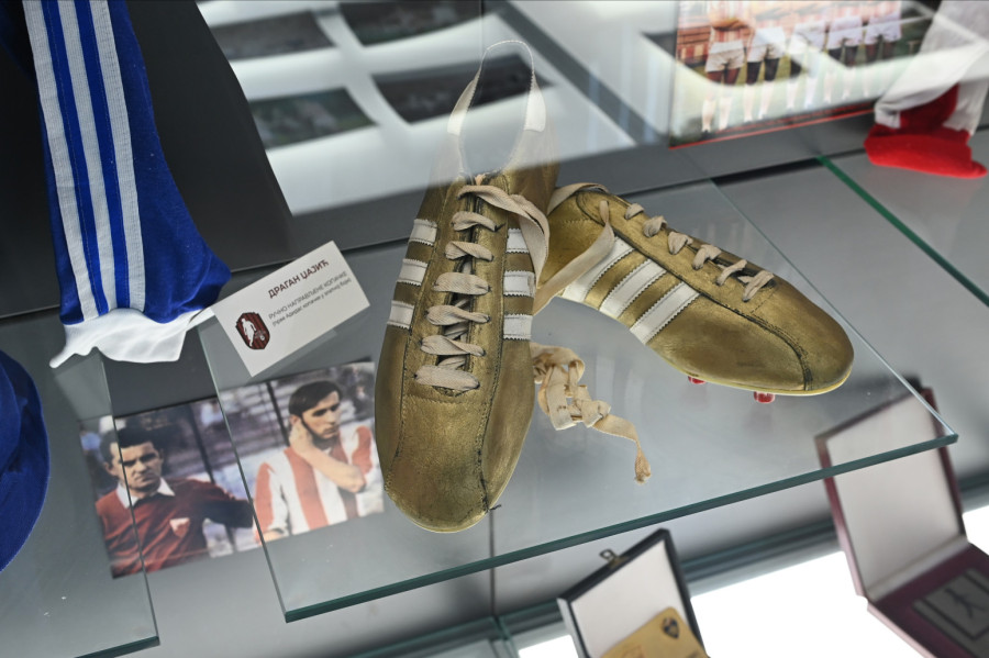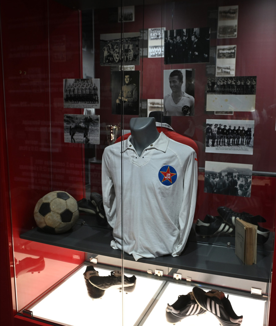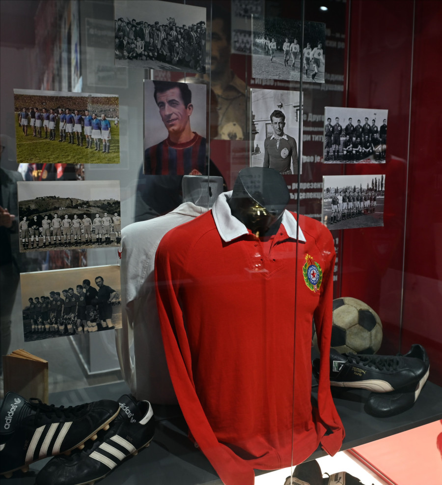 Kopačke Dragana Džajića sa nastupa za selekciju sveta. Dres Duleta Savića sa utakmice protiv Real Madrida.