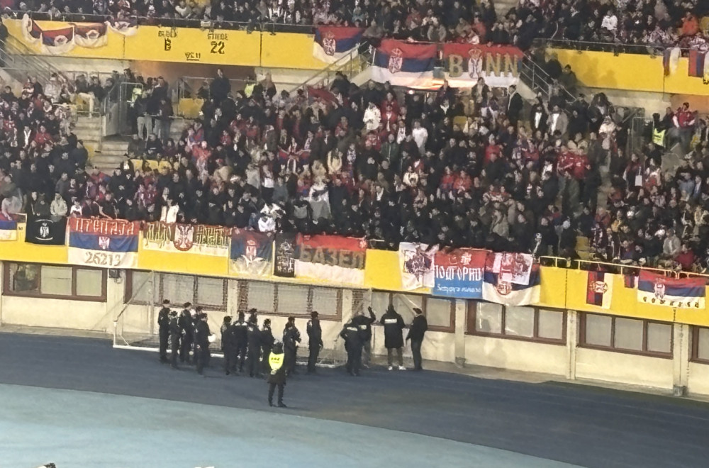 Policija je reagovala na jedan transparent srpskih navijača na utakmici između Austrije i Srbije u Beču.