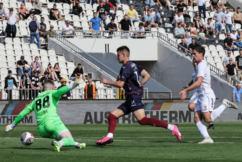 Ipak, odlučio se da "izlomi" golmana i postigne pogodak na prazan gol. To mu nije pošlo za rukom, loše je odreagovao i defanzivac Voždovca je odneo loptu iz šesnaesterca.