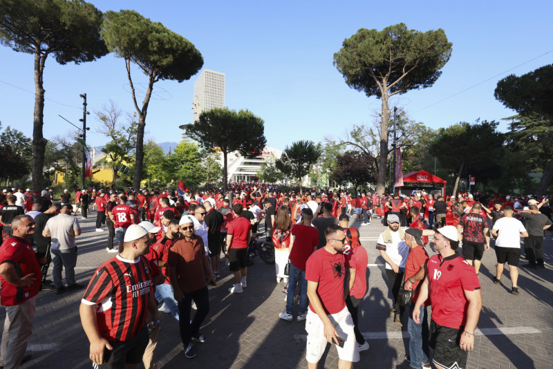 Zapravo, celokupan širi deo grada je od popodnevnih sati “okupiran”, saobraćaj blokiran, a “grotlo” se nalazi ispred “Er Albanija” stadiona gde su domaće pristalice čekale i dočekale autobus sa fudbalskom reprezentacijom Srbije.