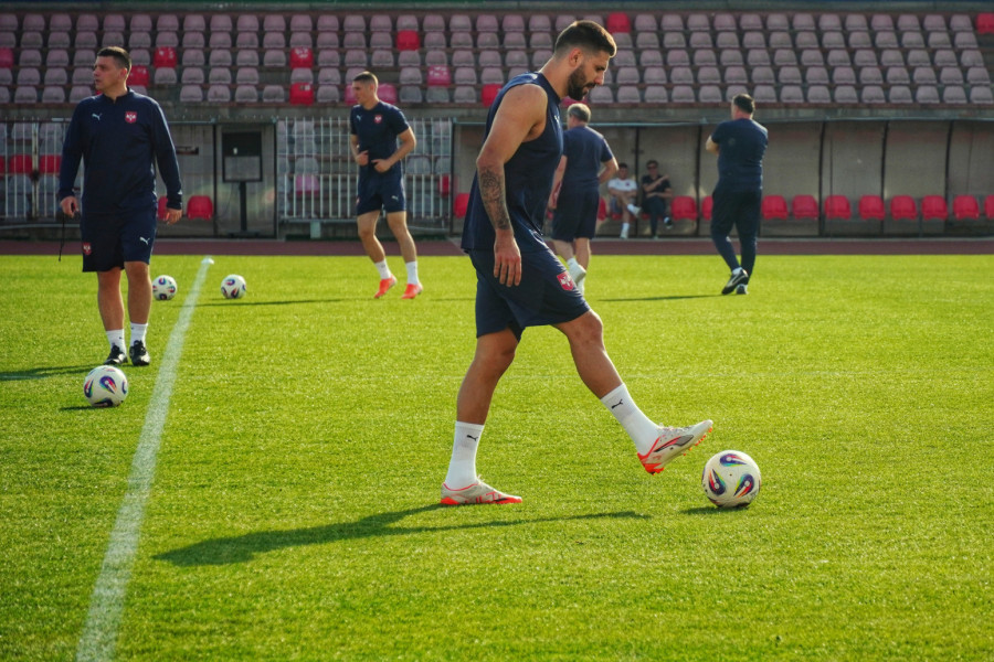 Fudbalska reprezentacija Srbije odradila je danas trening na stadionu "Čair" u Nišu uoči meča protiv Andore u kvalifikacijama za Svetsko prvenstvo 2026. godine.