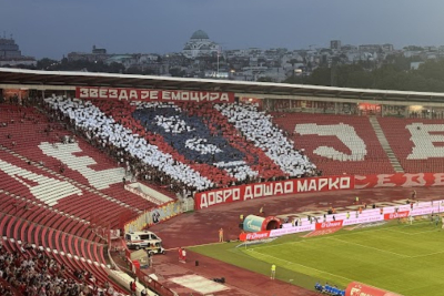 Fudbaleri Crvene zvezde u drugom kolu Superlige Srbije igraju protiv OFK Beograda, a navijači crveno-belih iskoristili su taj duel da se zahvale Marku Arnautoviću.