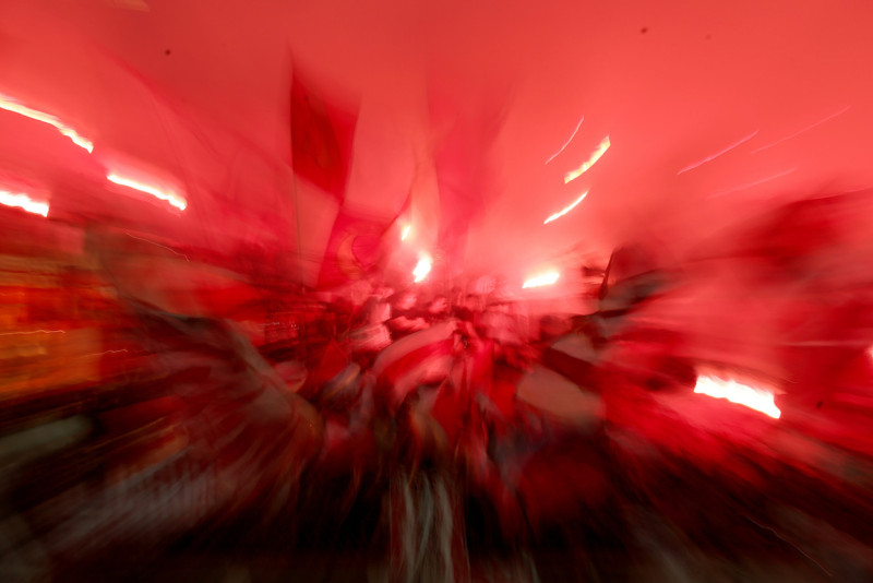 Na snimcima se vidi veliki broj navijača koji ulaze u sukob sa bakljama i štanglama.