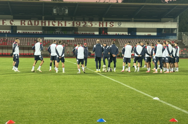 Sada već tradicionalno, fudbalska reprezentacija Srbije dan pred utakmicu u Leskovcu, trenira u Nišu gde je i smeštena.