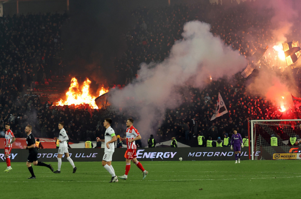 Videli smo požar na južnoj tribini gde su bili smešteni navijači Partizana, a dodaje se da je bila ugrožena bezbednost gledalaca i ljudi na atletskoj stazi.