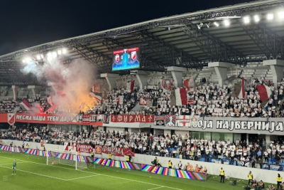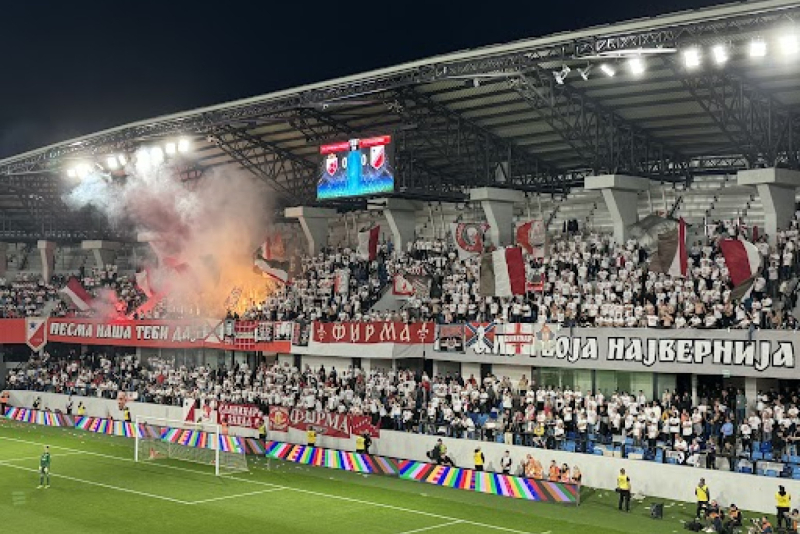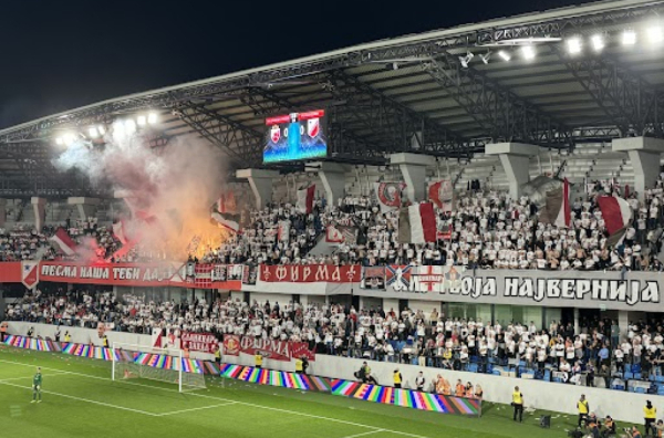 Prisutne su navijačke grupe obe ekipe, "delije" i "firmaši", prilično akustičan stadion zagrmeo je na himnu Srbije, dok je navijanje pristalica obe tima veoma bučno.