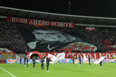 Pred meč sa Napretkom na severnoj tribini je razvijen veliki transparent sa njegovim likom.