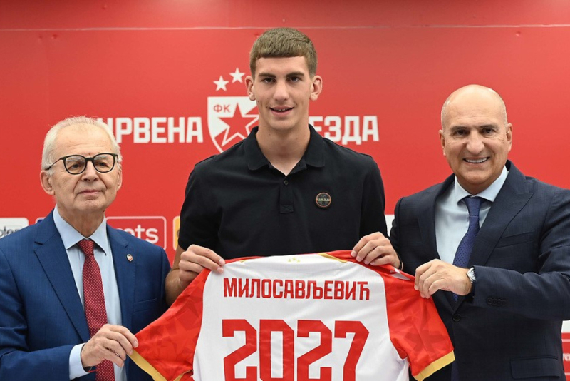 Milosavljeviću su na ugovoru prvi čestitali predsednik Svetozar Mijailović i sportski direktor Mitar Mrkela koji je govorio o kvalitetima talentovanog štopera.