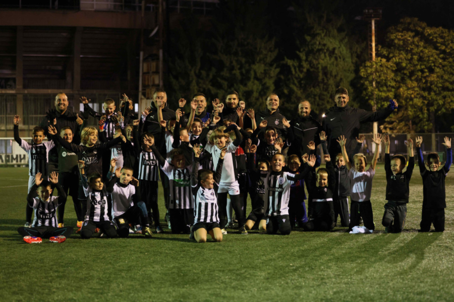 Prvotimci Partizana Bibars Natho, Gajas Zahid, Nikola Antić i Nemanja Stevanović posetili su trening školice fudbala Crno-bele bebe gde su sa polaznicima generacije malih igrača rođenih od 2016. do 2019. godine uživali u fudbalskim igricama i poligonima.