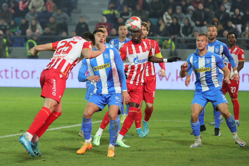 Zvezda je uglavnom držala loptu u nogama, kontrolisala situaciju na terenu, ali je do pauze zapretio još samo Aleksandar Katai.