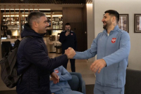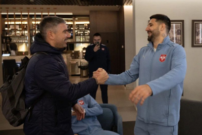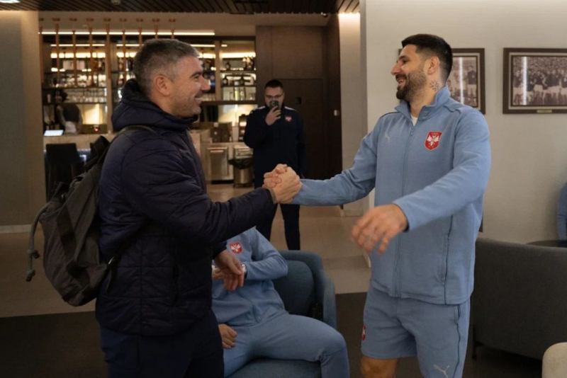 Selektor Srbije Dragan Stojković neposredno pred polazak iz Sportskog centra FSS u Staroj Pazovi sreo se sa Aleksandrom Kolarovom, koji predvodi mladu fudbalsku reprezentaciju Srbije.