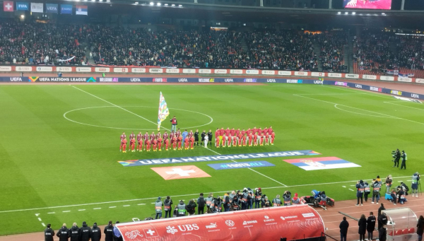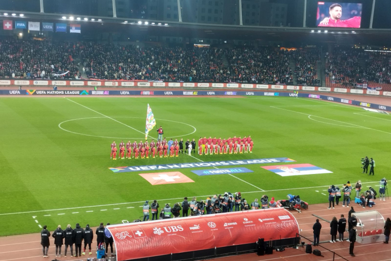 Prijateljski početak vrlo važne utakmice Lige nacija u Cirihu između Švajcarske i Srbije.