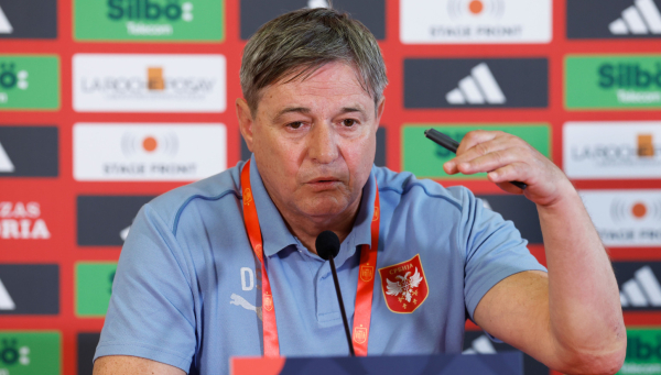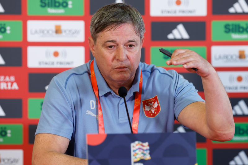 Dragan Stojković Piksi, selektor fudbalske reprezentacije Srbije, obraća se na konferenciji za medije posle izborenog ostanka našeg tima u "A" diviziji Lige nacija.