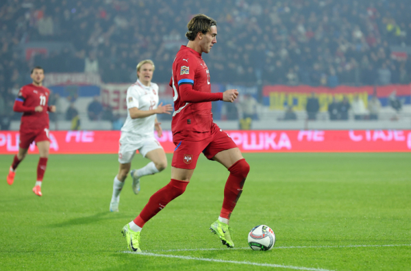 Fudbaler srbije Dušan Vlahović zbog povrede ranije je završio duel sa Dancima.