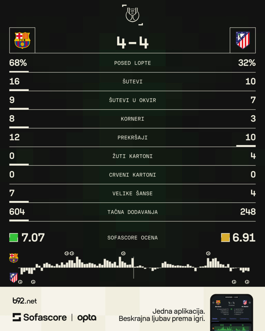 Uprkos najavi kolapsa Barse, Atletiko je stao sa napadima i prepustio protivniku da kontroliše meč što su ovi u potpunosti iskoristili.