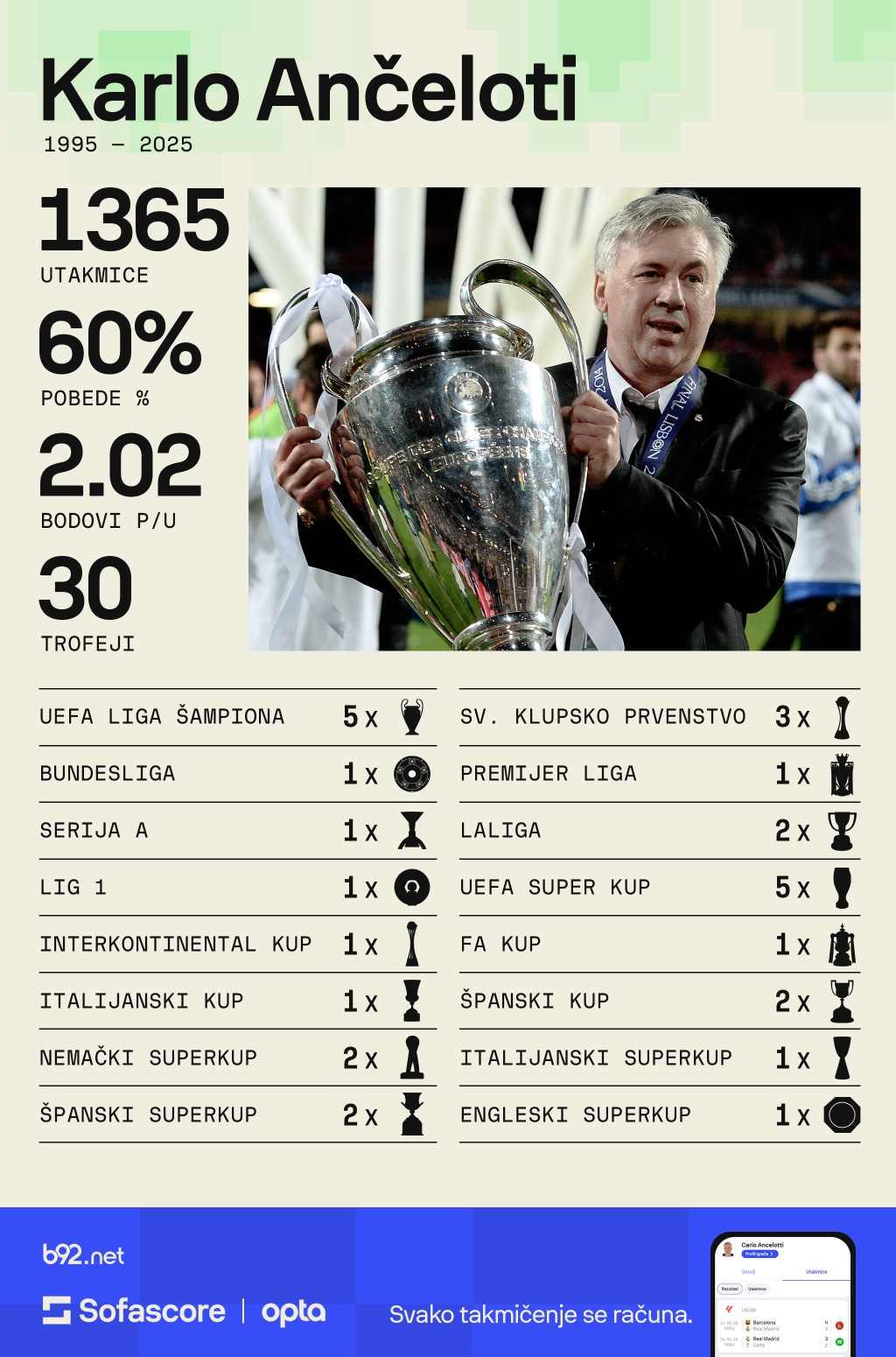 Na fudbalskom prestolu, gde se veliki gase i zaboravljaju brže nego što su se pojavili, jedan čovek već decenijama vlada sa tihom elegancijom, podignutom obrvom i osmehom.