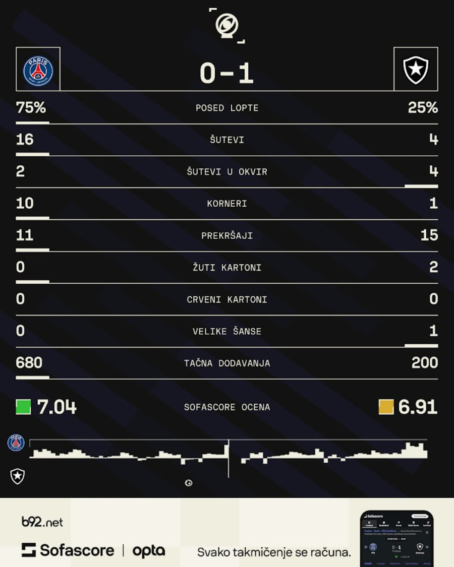 Fudbaleri Botafoga napravili su iznenađenje na Svetskom klupskom prvenstvu, pobedivši Pari Sen Žermen – 1:0.