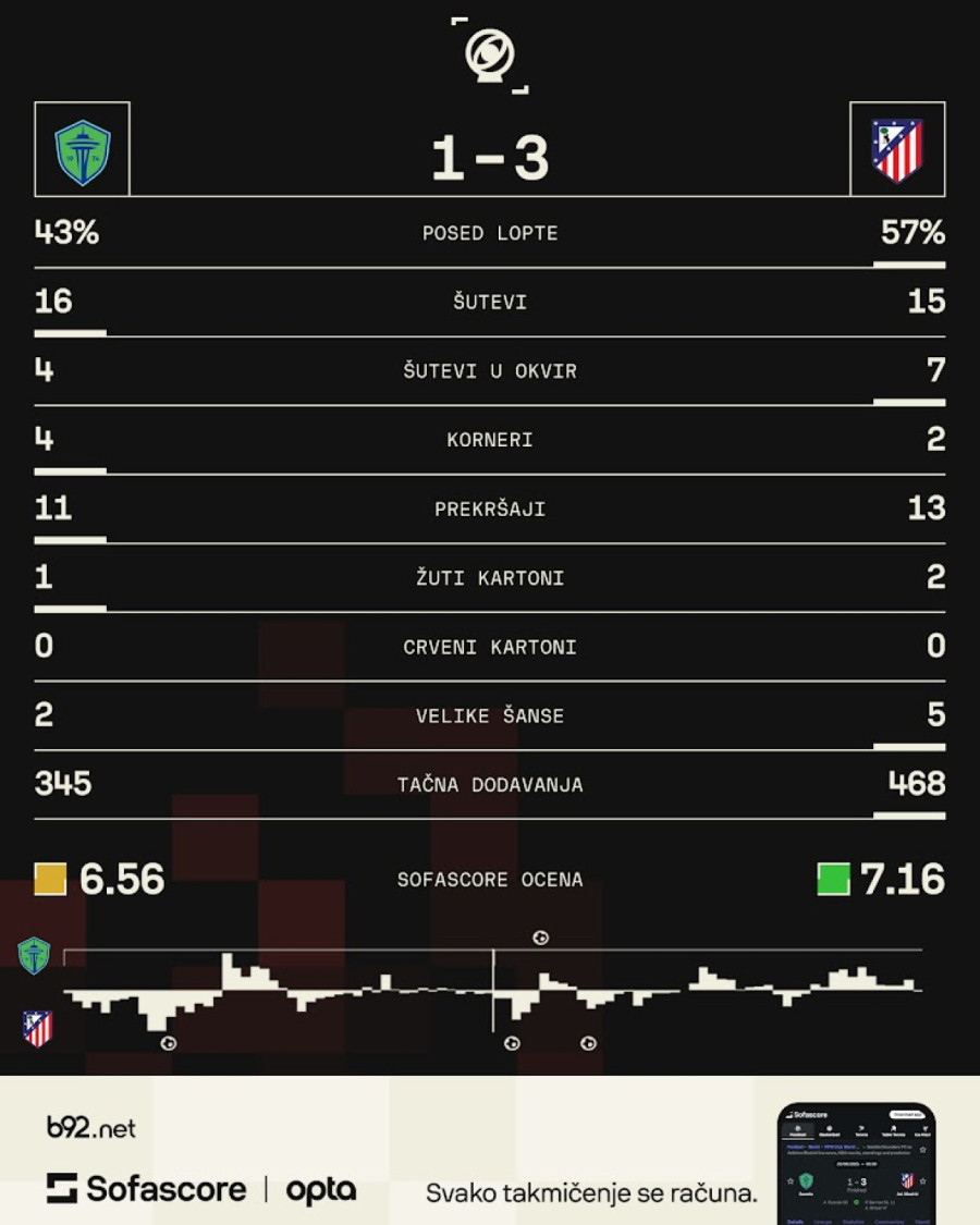 Spomenuti Atletko je opravdao ulogu favorita protiv Sijetla, slavivši na njegovom terenu sa 3:1.