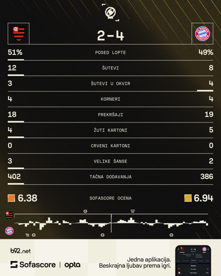 Bavarci su u osmini finala nadigrali Flamengo rezultatom 4:2 posle izuzetno zanimljivog meča igranog na "Hard Rok" stadionu u Floridi.
