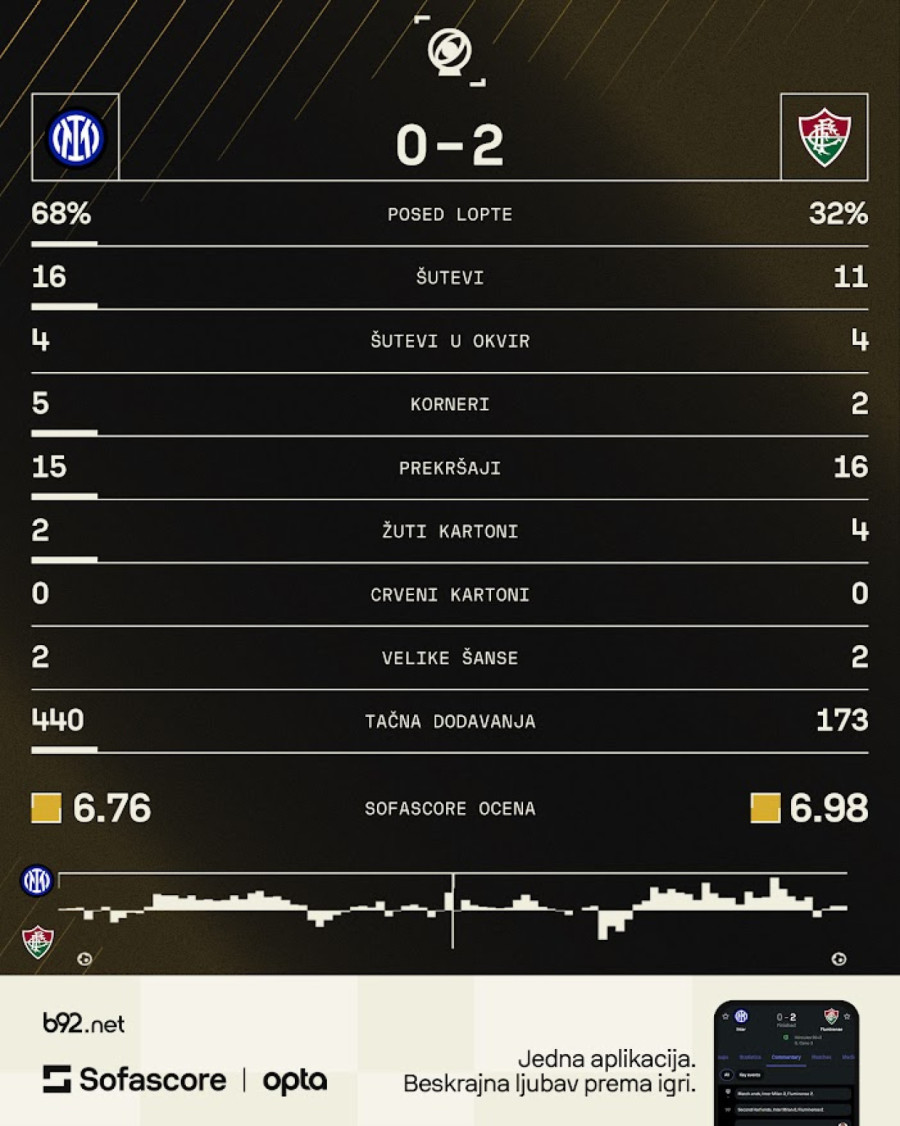 Kaznu za promašaje je usledila u trećem minutu nadoknade, kada je Erkules pogodio mrežu Intera i tako potvrdio pobedu Fluminensea.