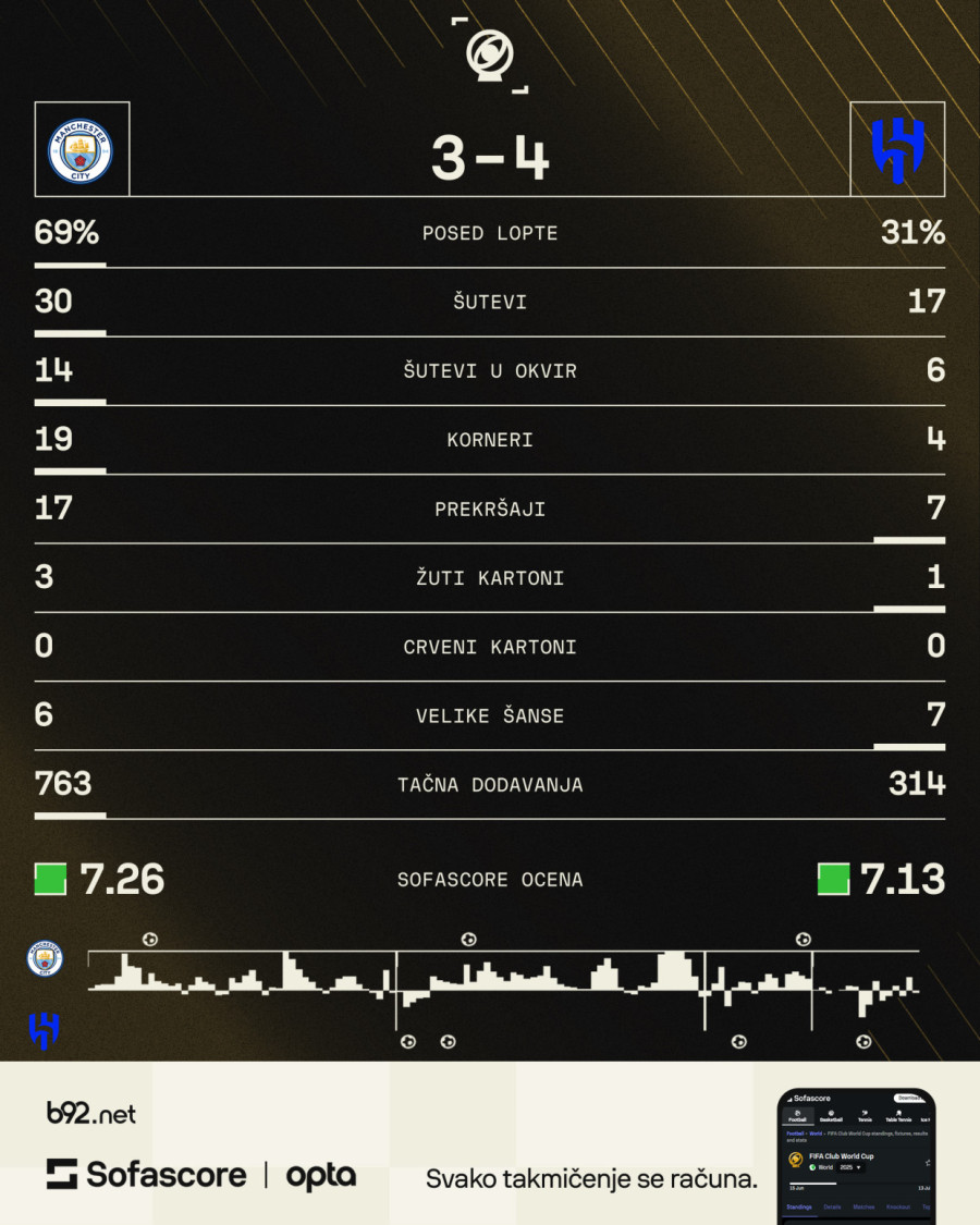 Al Hilal je savladao Siti 4:3, posle produžetaka u osmini finala FIFA Svetskog klupskog prvenstva.