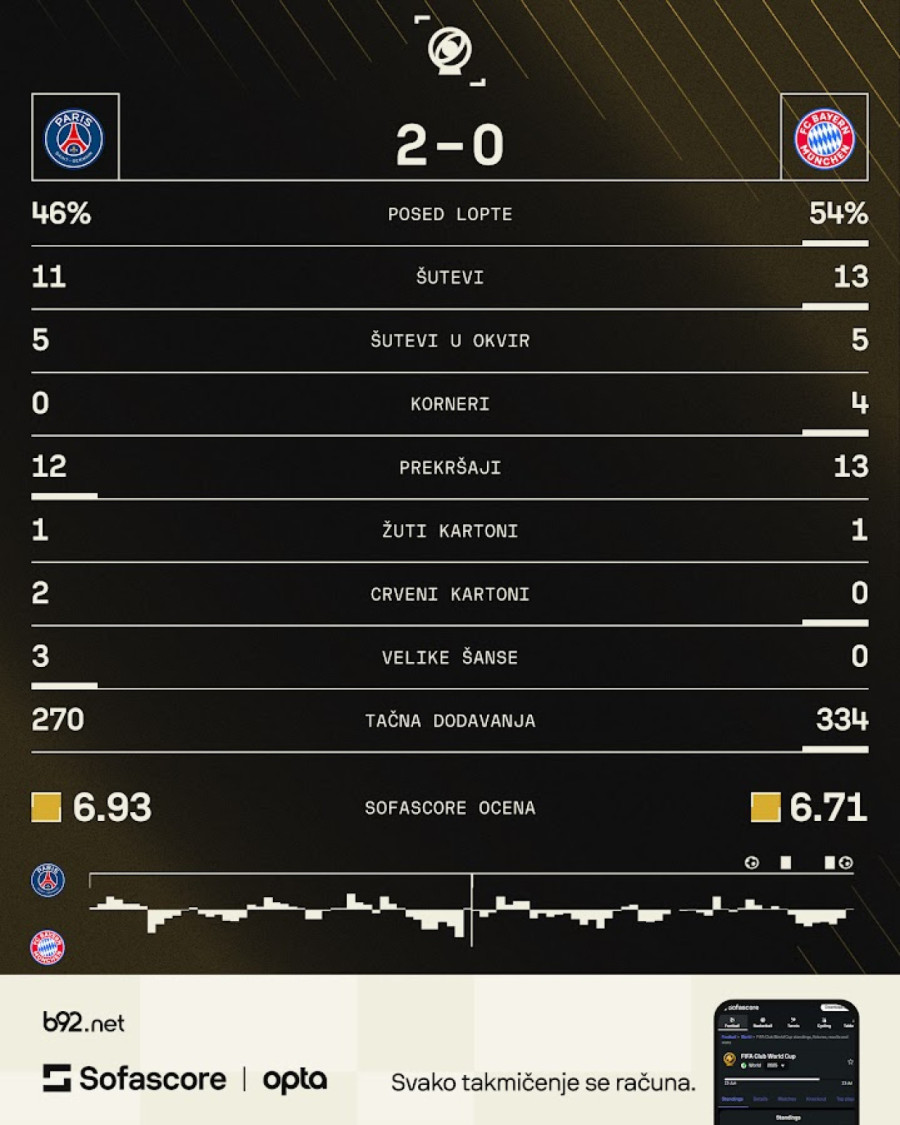 Sjajan meč, završen je na kraju pobedom Pari Sen Žermena nad Bajernom rezultatom 2:0 i plasmanom osvajača Lige šampiona u polufinale svetskog klupskog prvenstva.