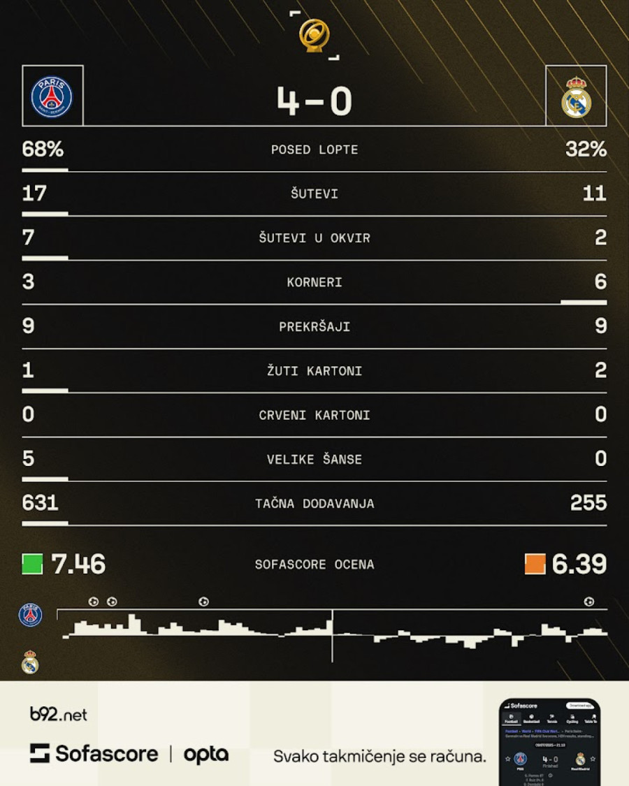 Još jedna brutalna demonstracija sile Pari Sen Žermena, i to protiv Reala u polufinalu svetskog klupskog prvenstva - trijumf od 4.0.