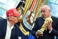 "To je verovatno najveći sportski događaj", rekao je Tramp u Ovalnoj kancelariji pored predsednika Međunarodne fudbalske federacije FIFA Đanija Infantina, držeći trofej namenjen pobedniku Svetskog prvenstva.
