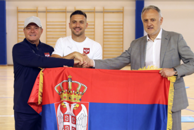 Tom prilikom on je simbolično predao zastavu naše zemlje selektoru Draganu Stojkoviću i kapitenu Dušanu Tadiću uz želje da obraduju naciju dobrim igrama i rezultatima na Evropskom prvenstvu.
