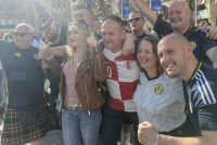 Uz, naravno, neizostavnu konzumaciju alkohola i to u ogromnim količinama. Strani mediji izveštavaju da su pojedini konobari padali u nesvest od broja porudžbina škotskih fanova.