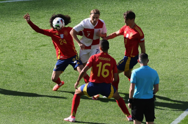 Fudbaleri Španije i Hvrtaske igraju prvi meč na EURO u grupi B, a već posle prvog poluvremena "crvena furija" ima ozbiljnu prednost.