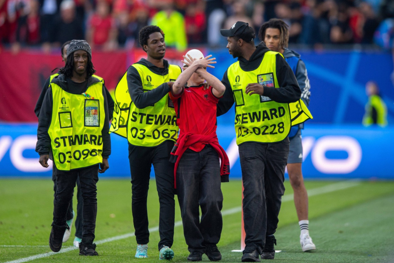 Tako je nakon meča zabeležen upad nekoliko navijača Albanije na teren, pa su redari imali pune ruke posla da ih uhvate, savladaju i izvedu ih van granica igrališta, gde im je i mesto.