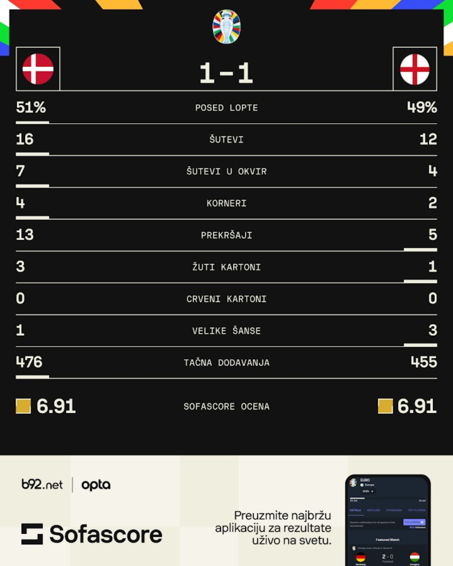 Ne bi ni to bili iznenađujući ishodi s obzirom na to da smo dosad videli vrlo ujednačen fudbal ove četiri reprezentacije i ono što je najjači utisak - da Englezi nisu nikakav bauk.
