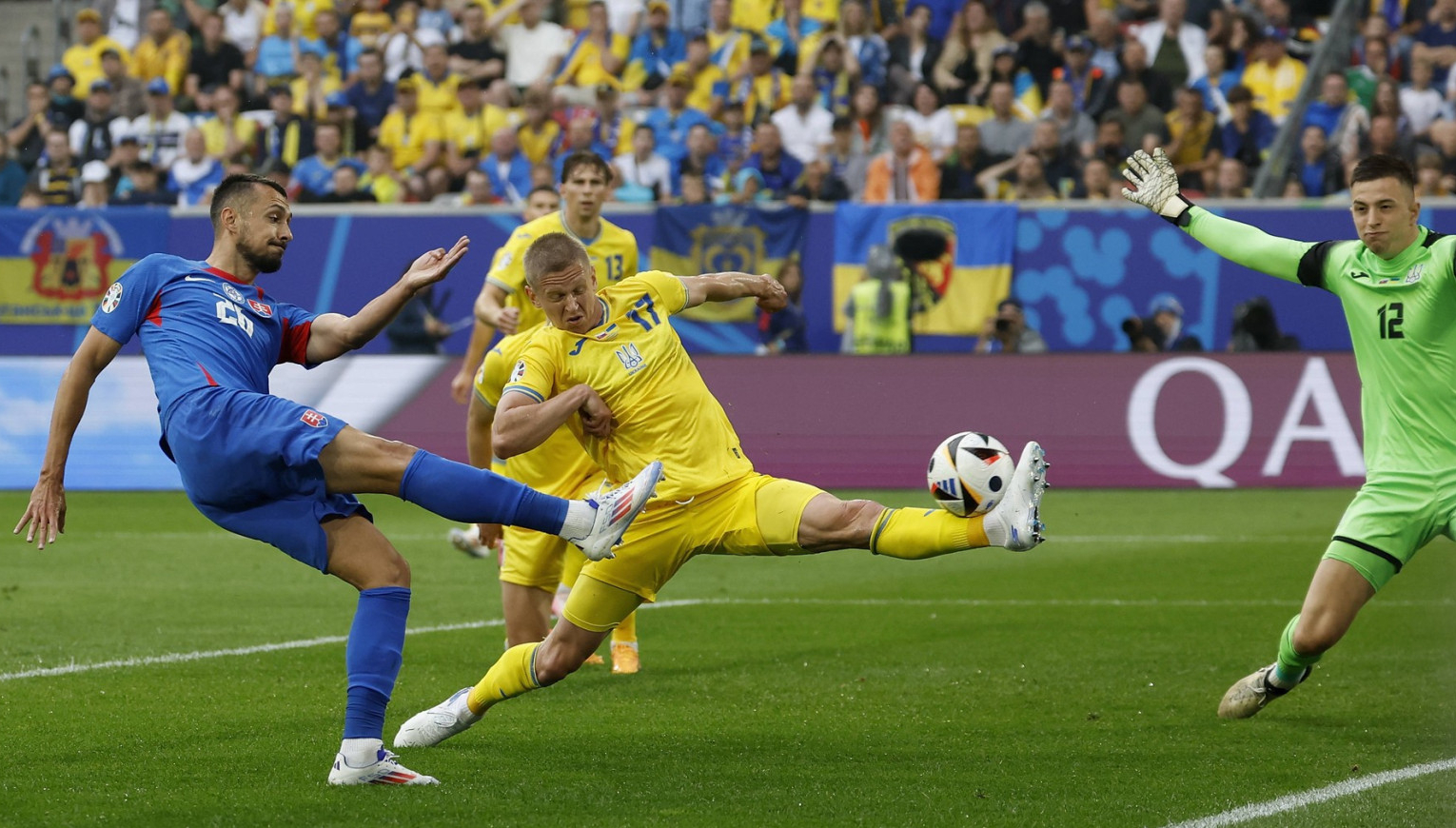 U sudaru suseda, Ukrajinci su uspeli da savladaju Slovačku sa 2:1 (0:1) i tako dođu do prva tri boda na šampionatu kontinenta.