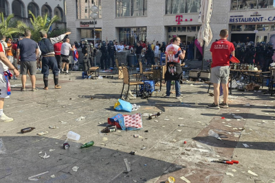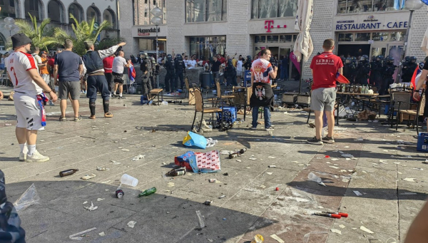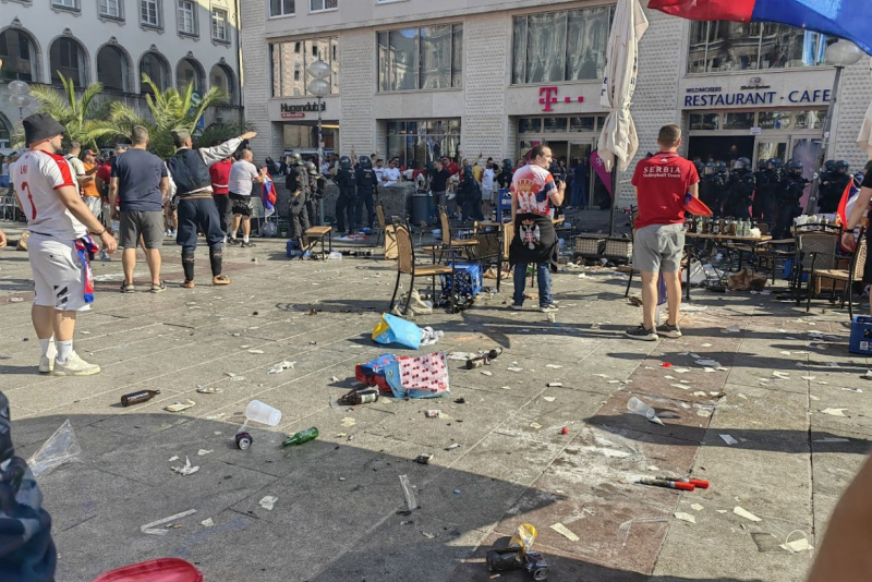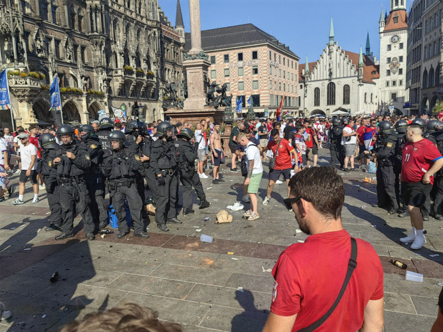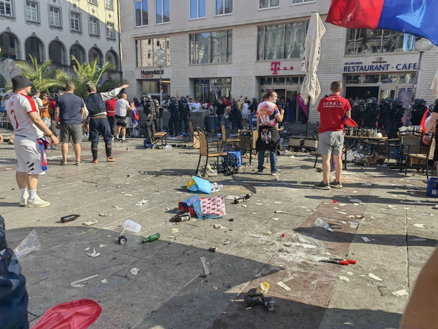 Na Marijenplacu je jedan albanski navijač isprovocirao pristalice "orlova", koje su potom ušle i u sukob sa nemačkom policijom nakon što je jedan od njih uhapšen.