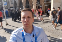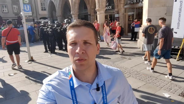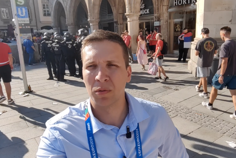 Novinar B92.sport Stefan Smuđa javlja se iz Minhena, gde je izbila tuča između srpskih navijača i nemačke policije.
