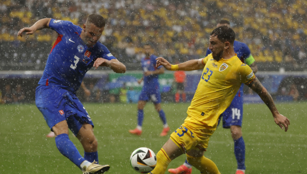 Slovačka je u Frankfurtu povela pogotkom Ondreja Dude u 24. minutu, ali je Rumunija izjednačila sa penala golom Razvana Marina u 37. minutu.