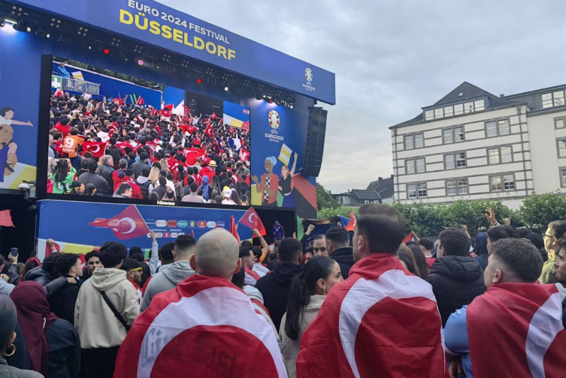 Međutim, u Diseldorfu se u potpunosti promenila slika i sada pokraj Rajne ima puno navijača. Prevashodno Turske, koja u ovom delu Nemačke ima puno svog stanovništva.