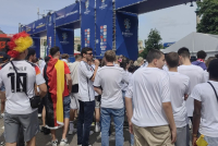 Nemci su pili pivo, Španci i vino, ali su obe strane bile raspoložene, ali bez pesme i prevelike buke. No, po izlasku iz vagona, krenula je pesma, i to od strane španskih navijača.
