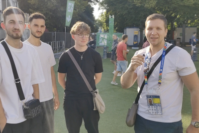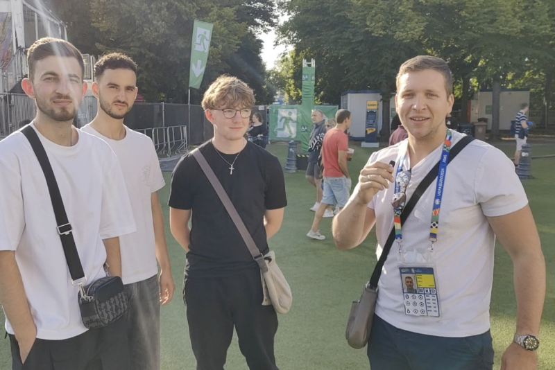Dok odbrojavamo sitno, u fan zoni pored "Brandenburške kapije" pitao sam domaće stanovnike za mišljenje o predstojećem finalu, ali sam dobio pomalo neobičan razgovor sa trojicom momaka koji žive u Nemačkoj.