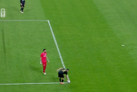Međutim, sudija je procenio da je time lopta već bila izvedena, te je igranje rukom okarakterisao najstrožom kaznom.