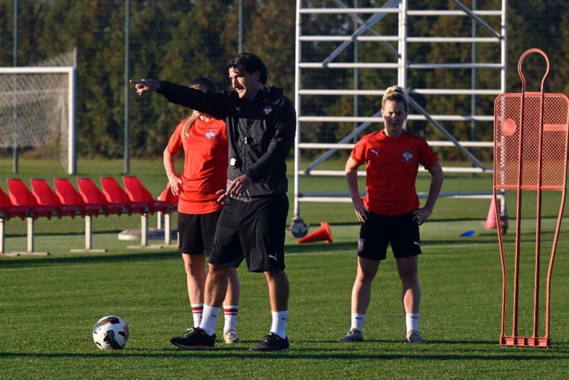 Po dolasku u SC FSS i pred prvi trening devojke su pozdravili prva dama srpskog fudbala Sandra Sremčević, potpredsednica FSS i Bojan Pavićević, direktor svih ženskih i futsal selekcija FSS.