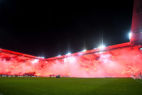 Meč koji je rešen u samoj završnici obeležila je ipak spektakularna bakljada domaćih navijača.