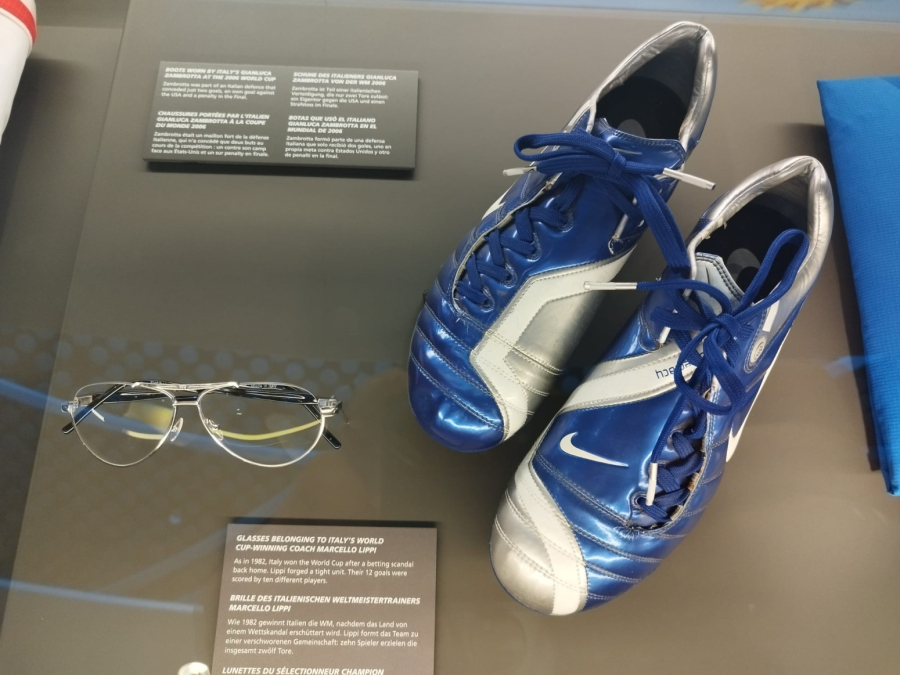 Dalje se mogu naći kopačke u kojima je Đanluka Zambrota osvojio Mundijal 2006. godine sa Italijom, kao i čuvene naočare koje je nosio selektor "azura" Marčelo Lipi.