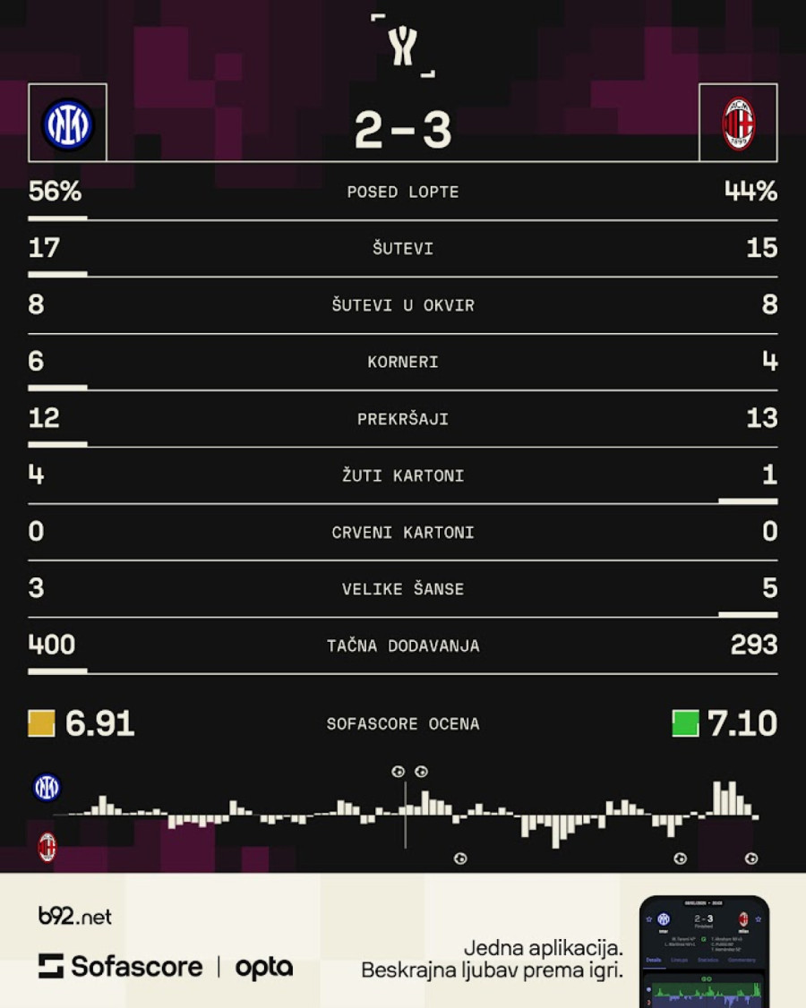 Posle gola momentum je bio na strani ekipe Milana, ali taj period igra Milan nije iskoristio da dođe do izjednačenja. I tu je heroj Intera bio Jan Somer i Bastoni koji su sačuvali mrežu svog tima.