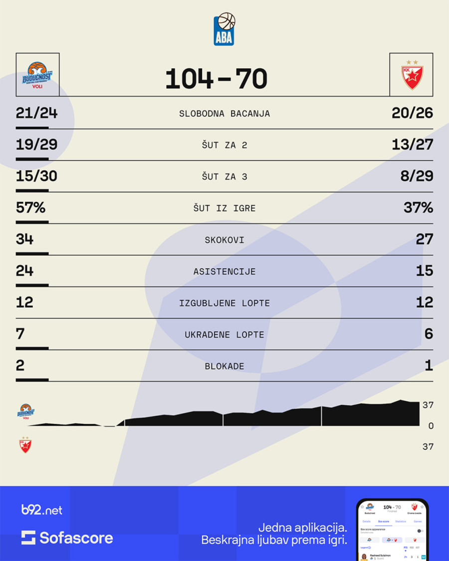 Od kraja prve četvrtine je na terenu postojala samo ekipa Budućnosti koja je razbila Zvezdu u svakom smislu te reči.
