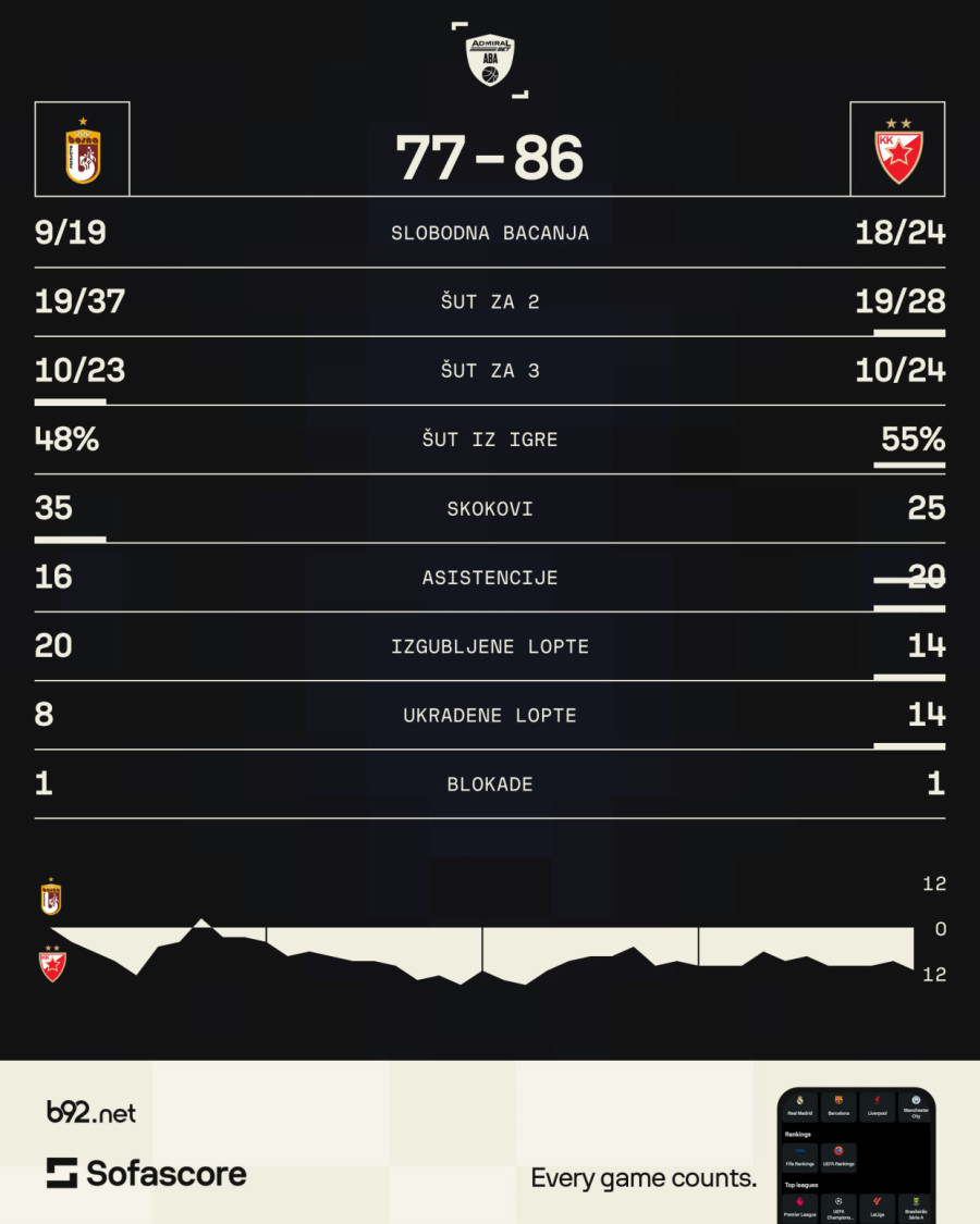Zvezda je kontrolisala ritam u poslednjoj četvrtini, u jednom momentu je Bosna prišla na -6 (76:70), ali su crveno-beli dodali gas, došli do dvocifrene prednosti. Potom rutinski priveli meč kraju.